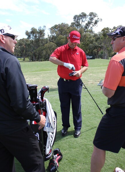 Titleist Brand Ambassador Greg Chalmers dialling in the loft of his 913 driver as the 'Fremantle Doctor' blows in the afternoon.