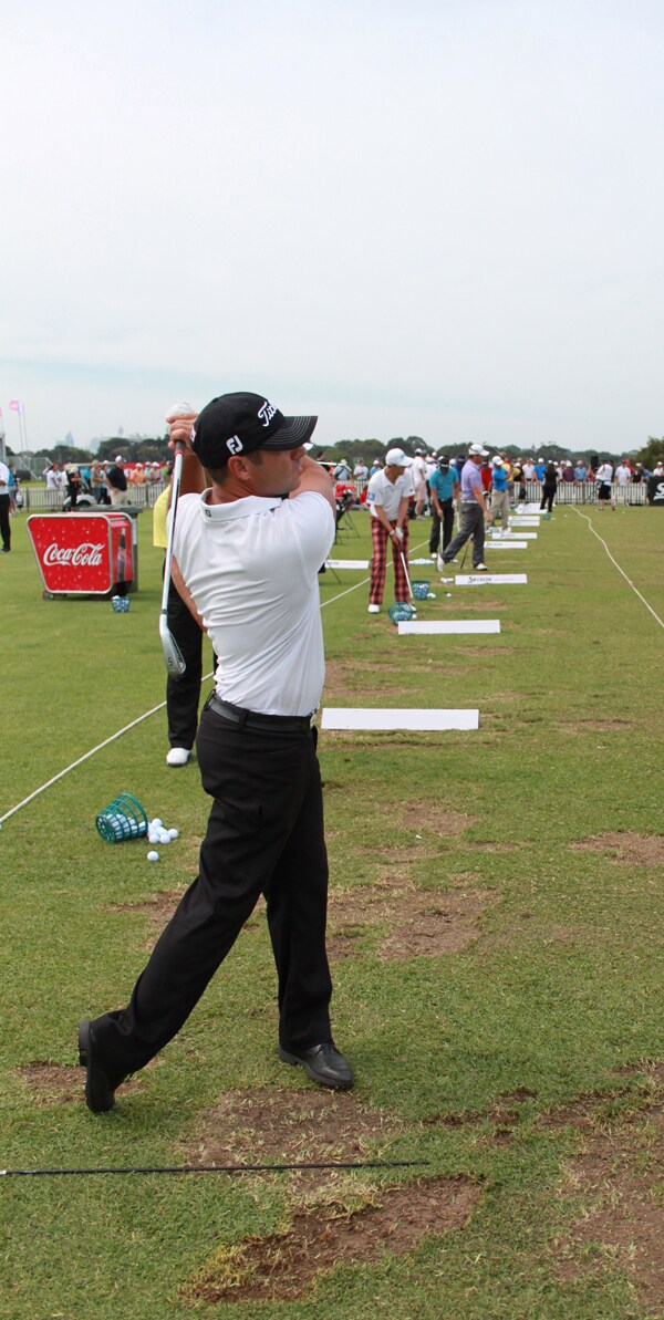 Titleist golf ball Loyalist Terry Pilkadaris warming up on Wednesday at The Australian Open.