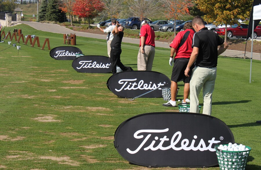 After a short presentation from our Titleist Product Team, Titleist staffers hit the turf at the Titleist National Fitting Centre to test out the new 712 Iron, Vokey SM4 and Scotty Cameron California Series products.