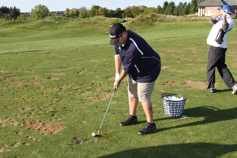 Attending his first Team Titleist Event, Shawn P. warms up on a chilly morning!