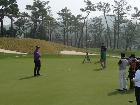 Adam gets ready to film some long putting intstruction