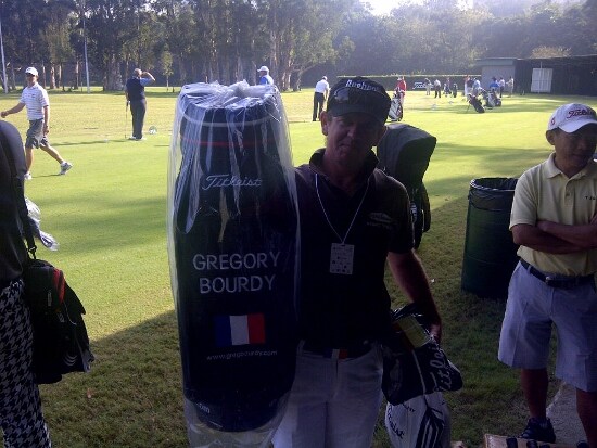 Gregory Bourdy's caddie picks up a new bag for the 2009 champion