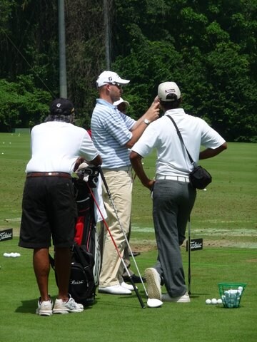 Titleist Tour Technician Phil "Lucky" Dimmock goes for a slow bake on the range