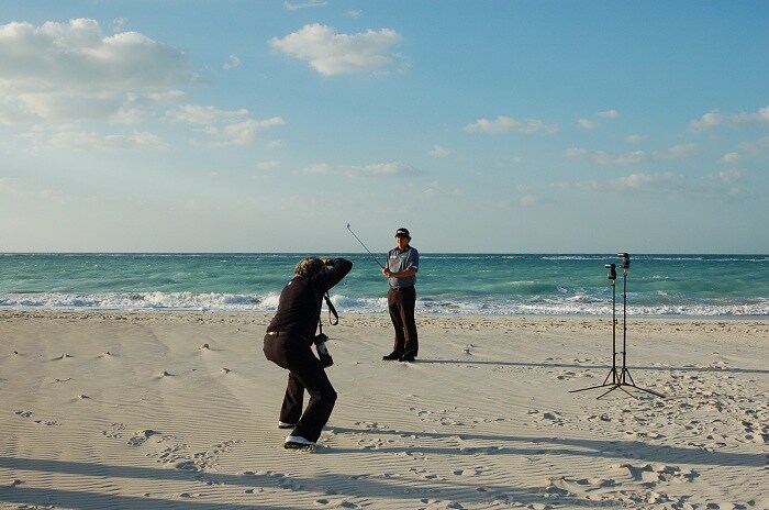 Jason gets in amongst the sand to get the right shot - golf and photographic!