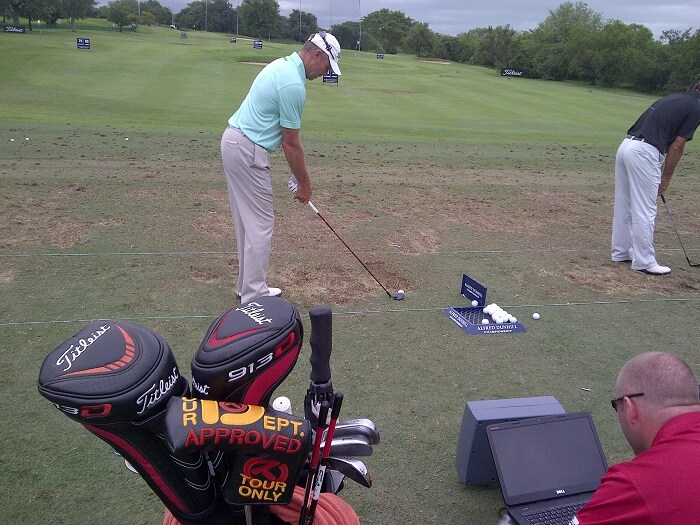 Henry gets down to some yardage work with Titleist ambassador James Kingston