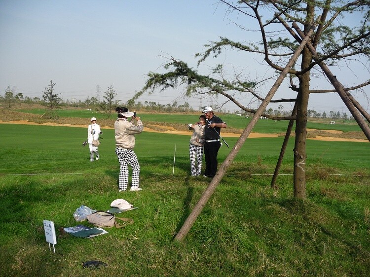 And takes some time out to take a photo or two with some of the local caddies
