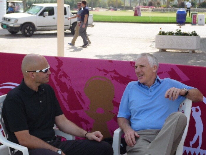The Two Phils - Dimmock and Price have a chat before hitting the range
