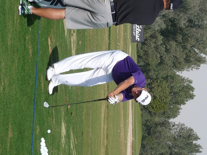 Titleist ball loyalist Louis Oosthuizen limbers up - he'll be hoping for stellar performance from his 2013 Pro V1x again this week