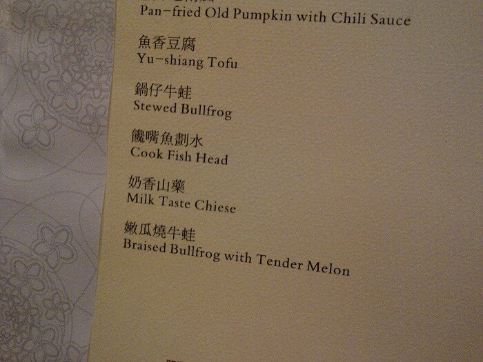 And out to dinner again - after last week's Fried Donkey with Spicy Herbs, how would you like your bullfrog cooked?