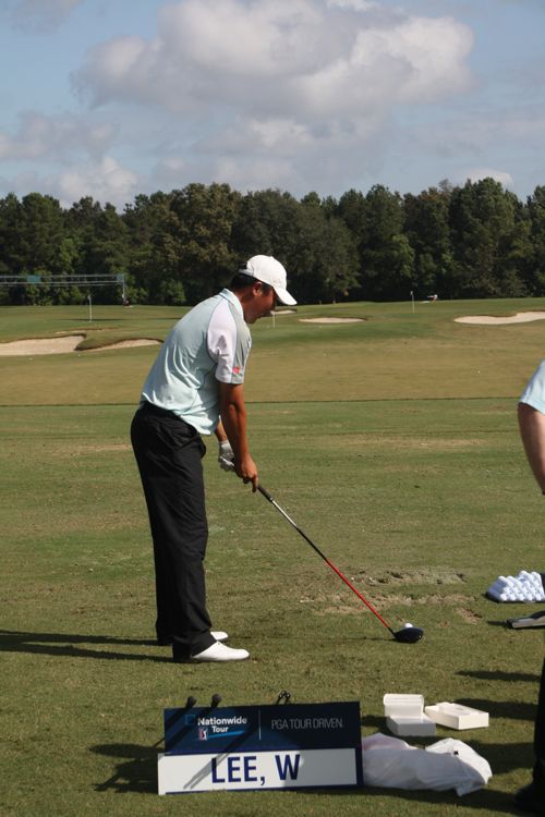 Pop quiz! Name the two new Titleist products Woon Joon Lee is testing in this photo.