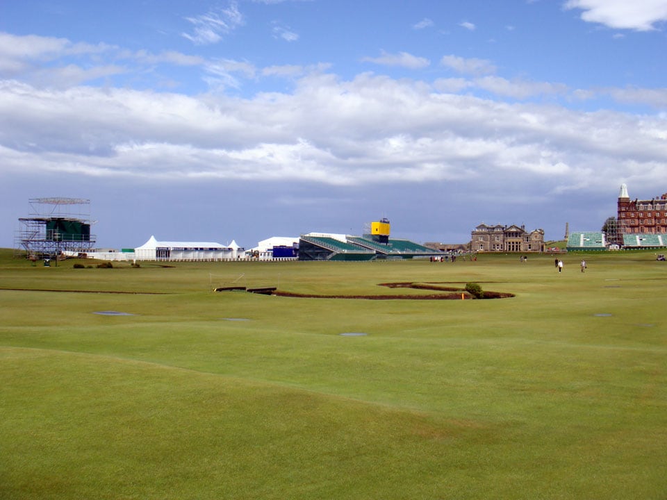 The winding Swilcan Burn runs across the first and 18th fairways. It is the only water hazard on the Old Course.