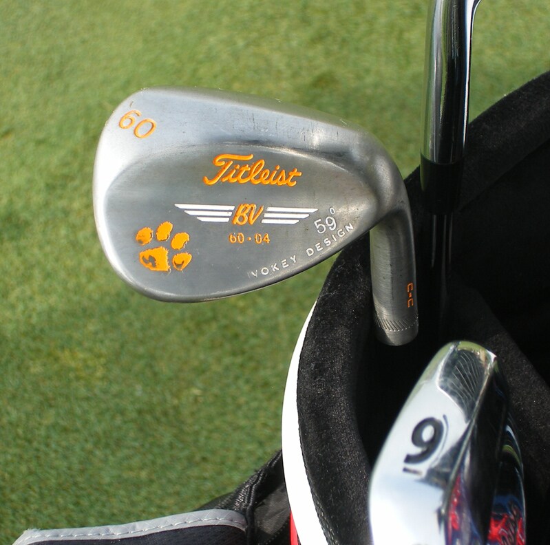 A closer look at Trahan's custom Vokey Design wedge. (He went to Clemson, of course.)