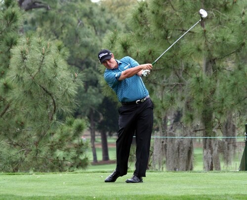 Titleist Brand Ambassador Johnson Wagner teeing off during a practice round with fellow Titleist Brand Ambassador and Virginia Tech alum Brendon de Jonge.