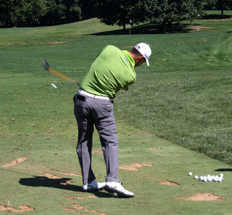 Gary Woodland getting in some swings on the range at Plainfield Country Club. In case you were wondering, yes that ball went really far.
