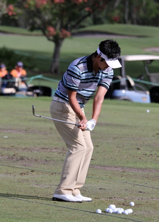 Titleist Brand Ambassador Ryuiji Imada warms up for his range session with some Vokey Wedge shots.