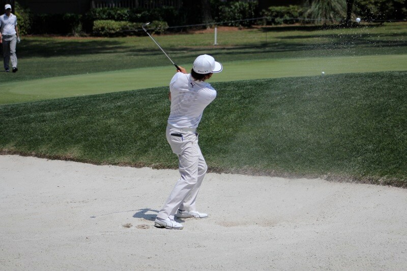 Rickie blasts his Pro V1x from the bunker using his Vokey Design Spin Milled 58º wedge.