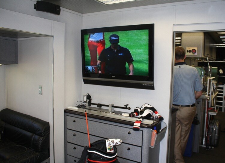 A replay of Titleist Brand Ambassador Adam Scott's victory last week at Firestone plays on Golf Channel in the Titleist Tour Van.