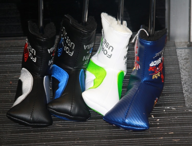 Four Scotty Cameron putters ready for pickup in the Titleist Tour Van.