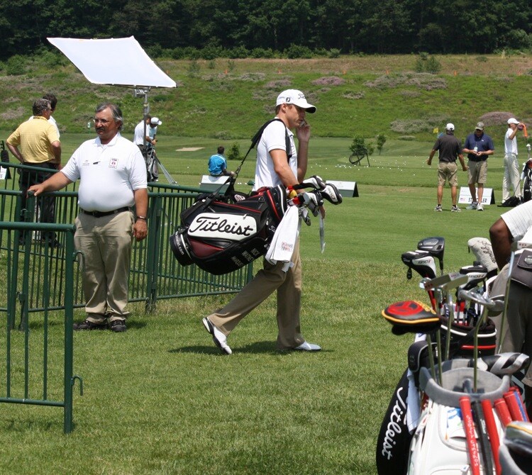 Titleist Brand Ambassador Nick Watney finishes up a phone call on his way to the range.