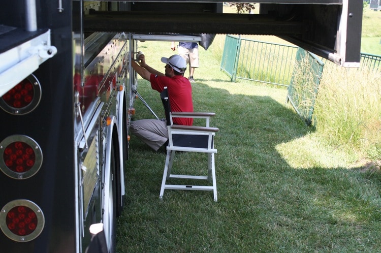 Vokey Tour Rep Aaron Dill looks for a shaft in one of the TTV storage bins.