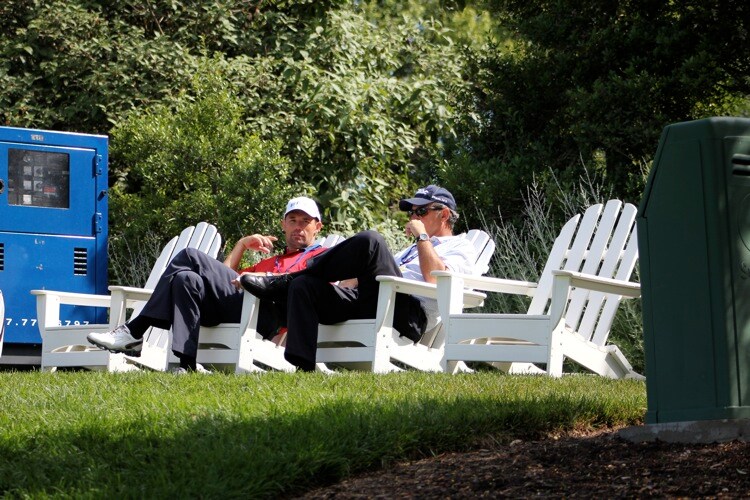 Pro V1x loyalist Padraig Harrington takes a quick break from the major preparation.