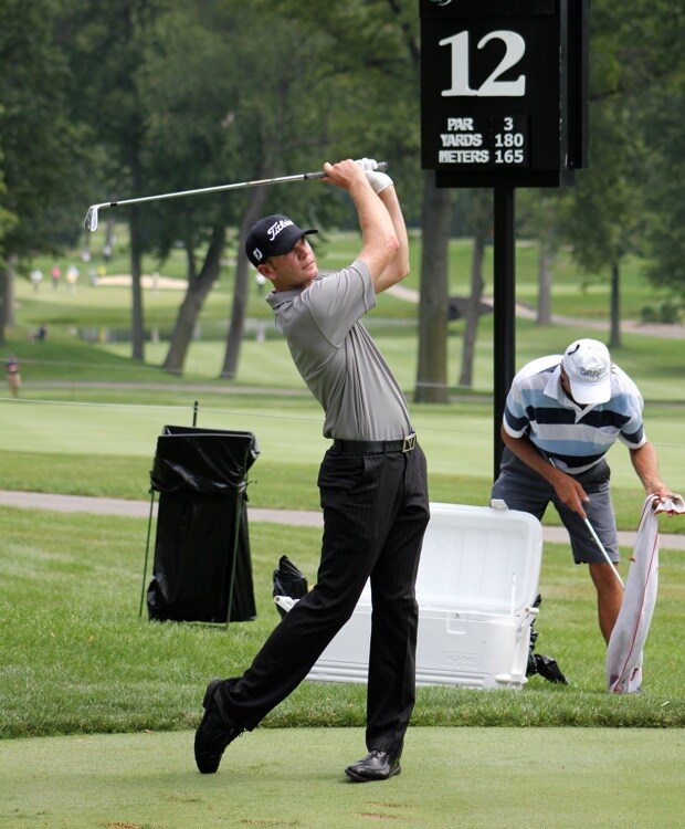 Titleist Brand Ambassador Brendan Steele hits his tee shot at the par-3 12th. See you next week!