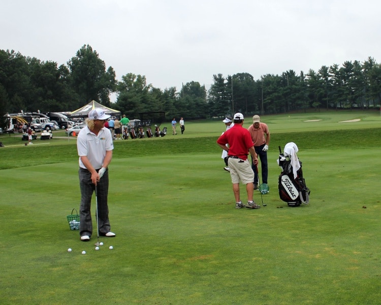 Back outside, Titleist Brand Ambassadors Charley Hoffman and Geoff Ogilvy get to work in the short game area.
