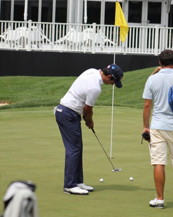 Now on the putting green, Matteo gets in some work with his Scotty Cameron Newport 2 Timeless GSS putter.