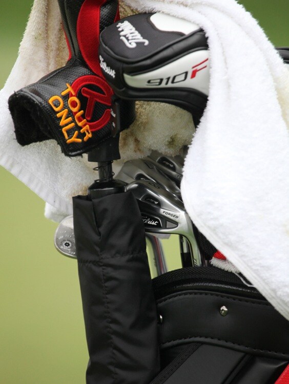 Underneath Jason's towel are new AP2 (712 Series) irons and Vokey Design SM4 wedges.