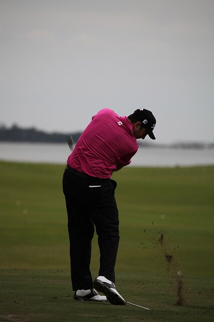 A blink of an eye (or click of a shutter) after impact. Head down and divot flying...
