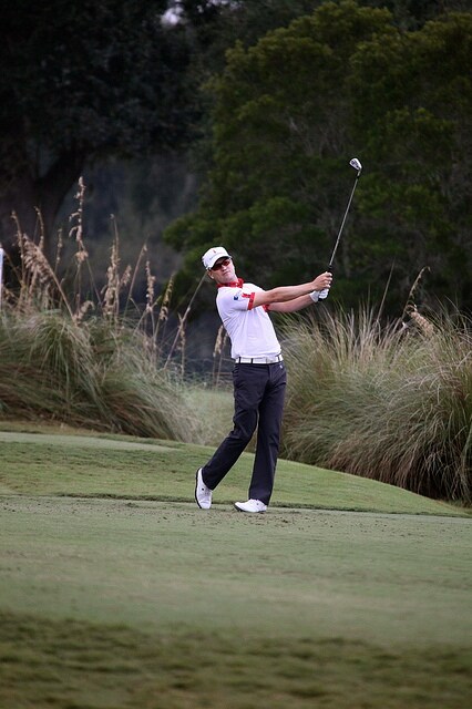 Zach stares down his Pro V1x as it zeroes in on the green.