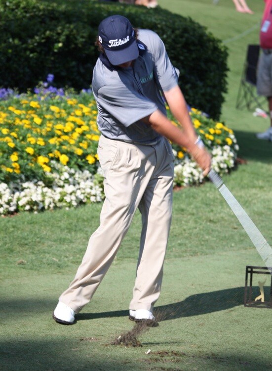 Titleist Brand Ambassador Jason Dufner hits from the tee at TPC Sawgrass' par-3 17th.