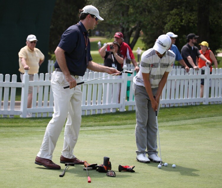 Titleist Brand Ambassador S.Y. Noh tests some new Scotty Cameron Select putters with the help of Tour Rep Kelley Moser.