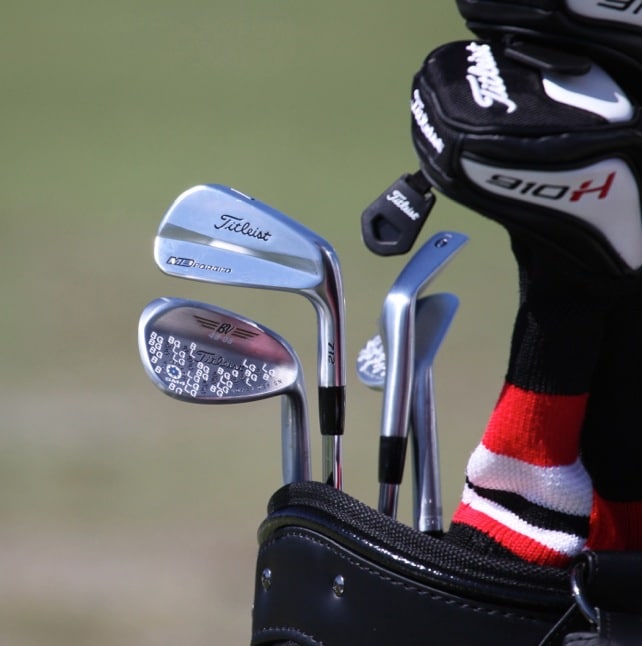 Bobby games new Titleist MB irons (4-9), as well as a new AP2 3-iron, and three Vokey Design SM4 wedges (46º, 54º, 58º).