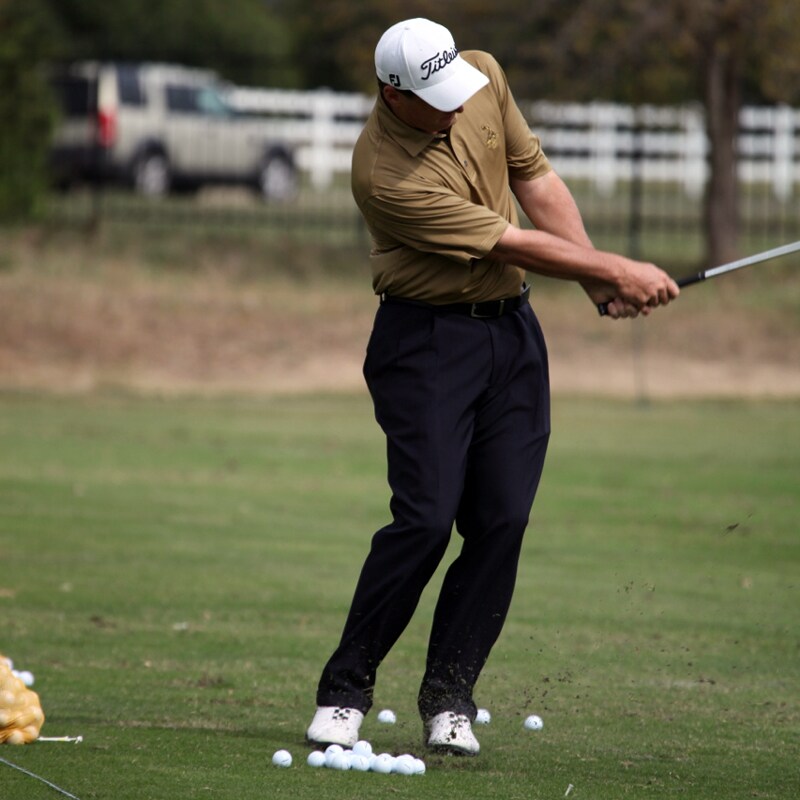 Darron Stiles begins the range session by hitting a few shots with his Vokey Design SM4 wedge. Stiles relied on his Pro V1 to a win at the Midwest Classic Presented by Cadillac in August, which helped him solidify the 17th spot on the Web.com 2012 money list heading into this week.