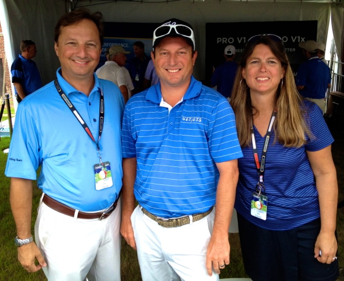 Titleist Golf Ball Fitting Manager Mike Gibson and Tim Clark snap a photo with Team Titleist member Suzanne.