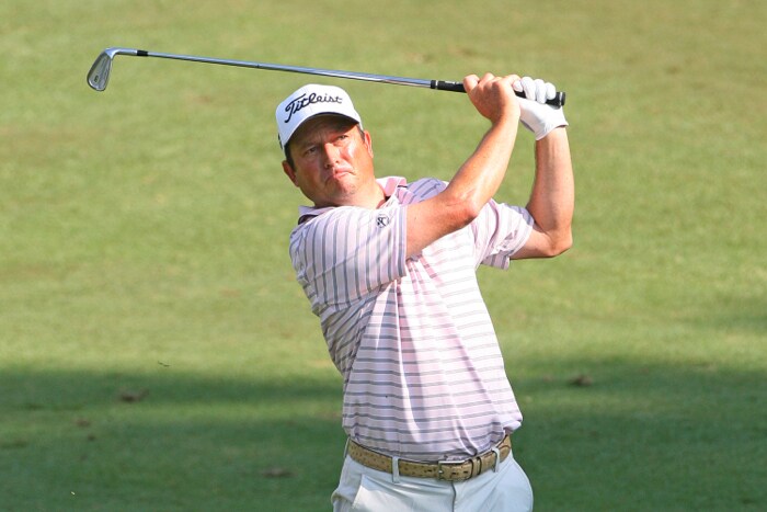 Tim Clark holds his follow through and stares down an eventual birdie putt (for the record, he made the putt).
