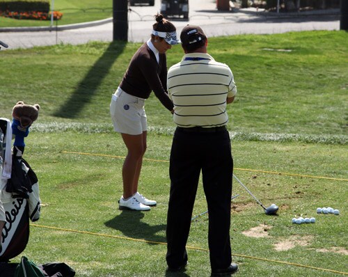 Titleist Brand Ambassador and LPGA rookie Mariajo Uribe works with her instructor early this week at La Costa.