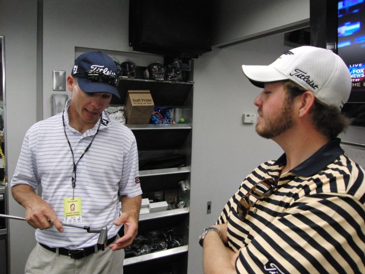 Larry discussing with Spencer the recent trend on Tour for deeper face milling patterns.