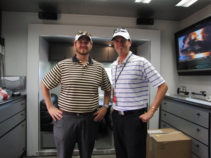 Spencer Reynolds (left) and Ryan Crysler (right) of MyGolfPerformance.com on board the Titleist Tour Van.