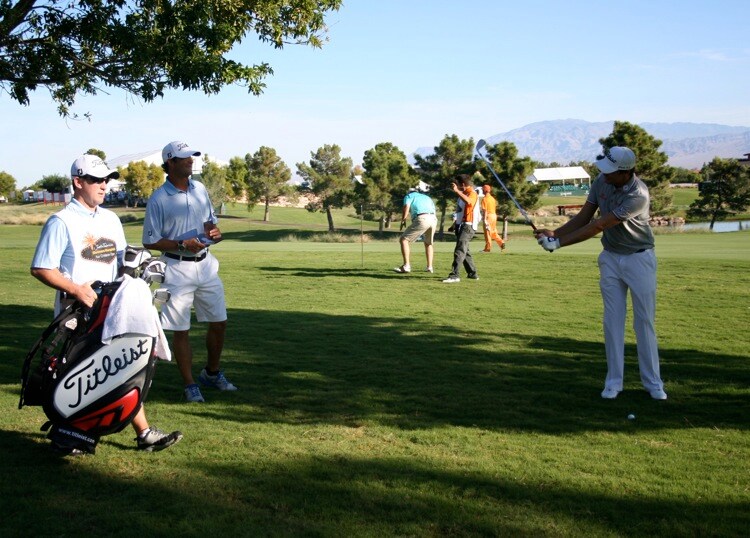 Nick lines up an approach with one of his new Titleist AP2 (712 series) irons.