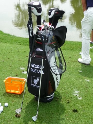 Meanwhile at the chipping green, George Coetzee gets some practice in.
