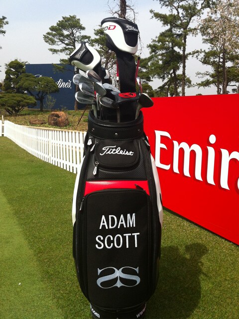 And here's a look at his bag. Adam plays the following: Titleist Pro V1 Golf Ball, 910D3 Driver, 910Fd Fairway Metal, 910H Hybrid, MB Irons, Vokey SM4 Wedges and a Scotty Cameron Studio Select Kombi (Long)