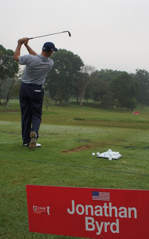 Titleist Pro V1 loyalist Jonathan Byrd hitting balls early morning Wednesday before the Pro Am.