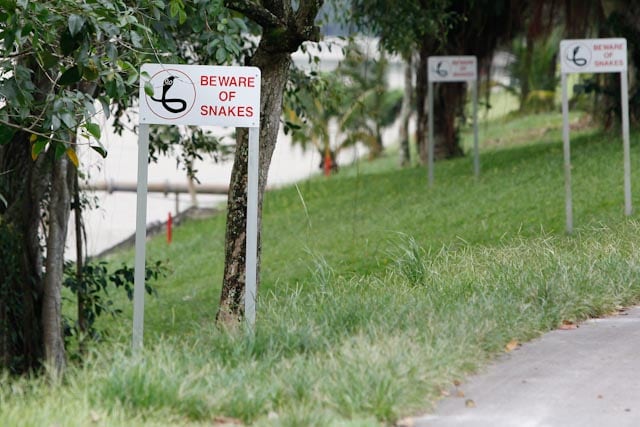 'Beware of Snakes'. Keeping your drives on the fairway is even more important at Warren Golf and Country Club.
