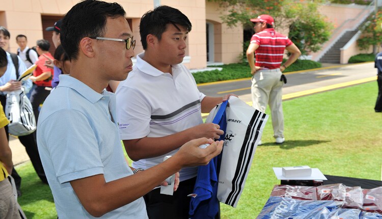 Team Titleist members Jonathan Lee and Cheong Jin Yu registering and receiving their goodies.