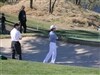 Geoff Ogilvy goes for a little stroll on the practice area at PGA West. Destination...?