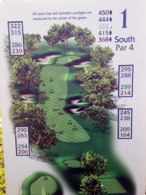 The first on the South Course is a test for an opening hole; it plays more narrow than it looks and longer than the yardage. A par and you're happy, a birdie and you've stolen one. In 2012, the par 4 yielded 46 birdies but caused 60 bogeys and 5 doubles for a 4.08 scoring average.