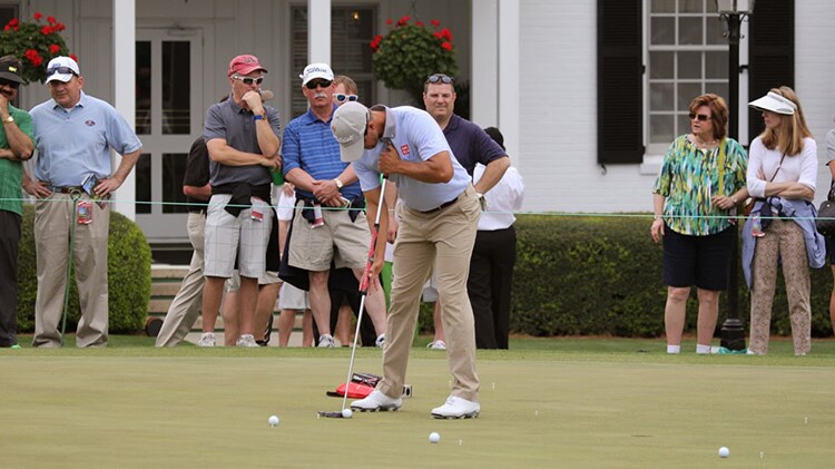 Titleist Brand Ambassador Adam Scott gets a feel for the speed of the greens...