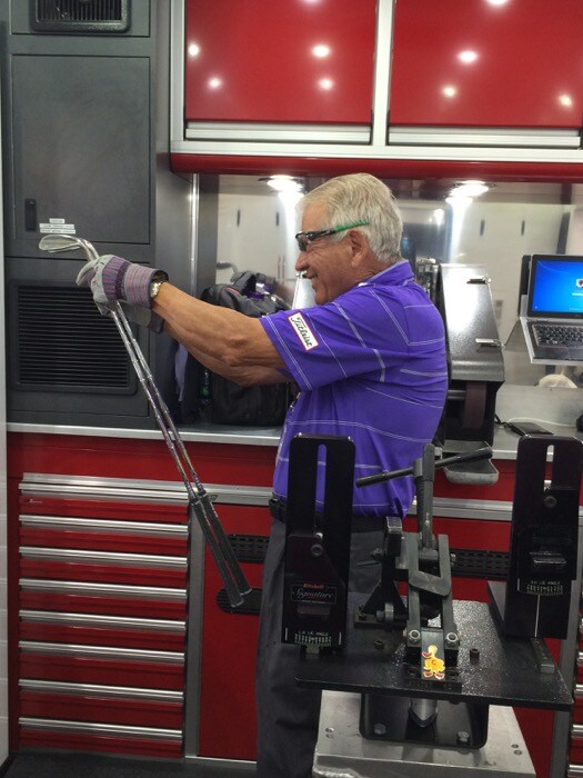 Meanwhile, Master Craftsman Bob Vokey eyes some custom grinds he's working on.